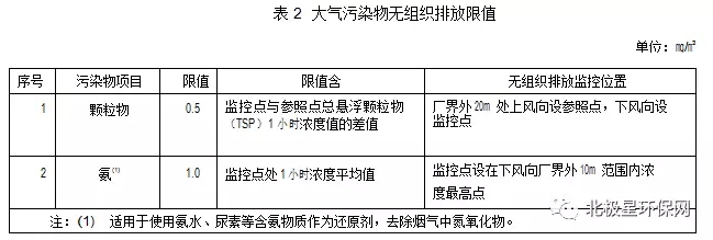 2、無組織排放污染物濃度限值