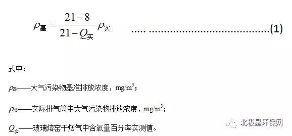 1.4 對(duì)于玻璃熔窯排氣(純氧燃燒除外),應(yīng)同時(shí)對(duì)排氣中含氧量進(jìn)行監(jiān)測(cè),實(shí)測(cè)排氣筒中大氣污染物排放濃度應(yīng)按式(1)換算為含氧量為8%狀態(tài)下的基準(zhǔn)排放濃度,并以此作為排放是否達(dá)標(biāo)的依據(jù)。其他車間或生產(chǎn)設(shè)施排氣按實(shí)測(cè)濃度計(jì)算,但不得人為稀釋排放。
